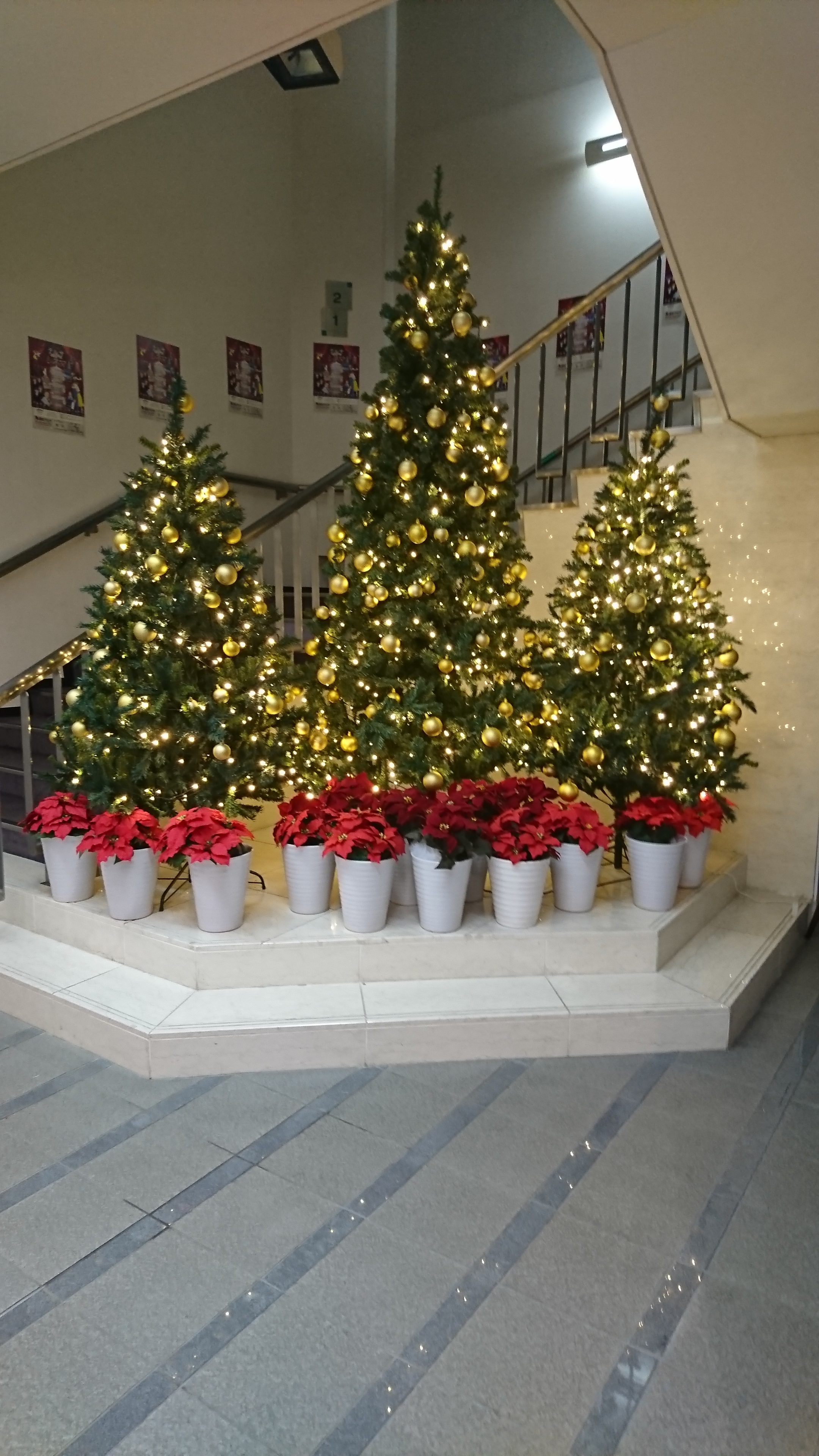 高松テルサのロビーにもクリスマスツリーを飾り季節感を感じるロビーになっています。