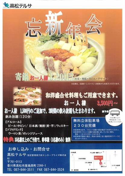 高松テルサのレストランのテルサ・ザ・シェラトンからのお知らせです。