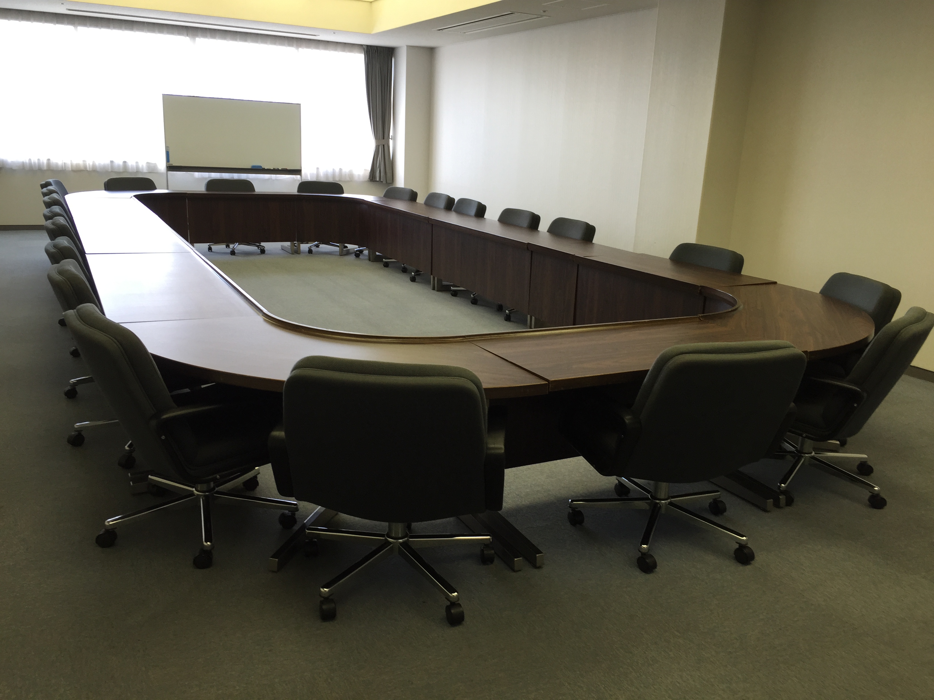机と椅子の配置も24名定員で長方形のスタイルになっており、普通の円卓会議はもちろん、役員会議、総会にもご利用頂けます。